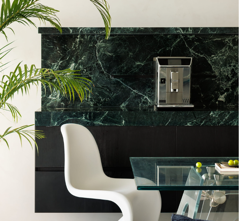 当繁复褪去,极简已成为当下时兴的风格,这是人们渴求生活回归简单的写照。但,简单并不等于无所求,它是一种向内的叩问,是抛却纷繁复杂的堆砌,将更多的“心思”藏在需要细心品味的地方。家,也应该是这样的一个所在,不追求过多的元素与装饰,却在细节处体现居住者的情趣、喜好,也给予每一个到访者一探究竟的机会。犹如这个家的绿色玄关墙,像一片波涛汹涌的大海,正在神秘地诉说,其中的故事需要每一个踏进这个家的人沉静下来耐心体会。