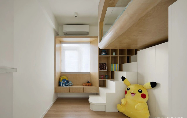 屋主放弃了“远、大、新”的郊区房,选择位于老城区的老旧小房子,我们打造几处有意思的空间,一个如置身于烟雨江南,小桥流水的多功能房;一个如悬浮树屋造型的儿童房。为屋主找到属于他们的“闹市中的桃花源”。