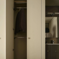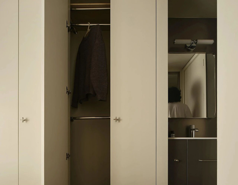 业主是一位非常有个性与品味的男士。在审美喜好与个性化表达上偏向金属质感的材质选择,例如不锈钢等。屋主需求:①喜欢不锈钢质感,中性冷淡的氛围环境;②需要将主卧内容纳一个卫生间;③开放式厨房使屋内视觉面积增大更加通透敞亮;④将阳台封入室内使用洗烘机并预留叠放位置;⑤在保证美观度的前提下满足基本实用功能以及舒适的布局;
